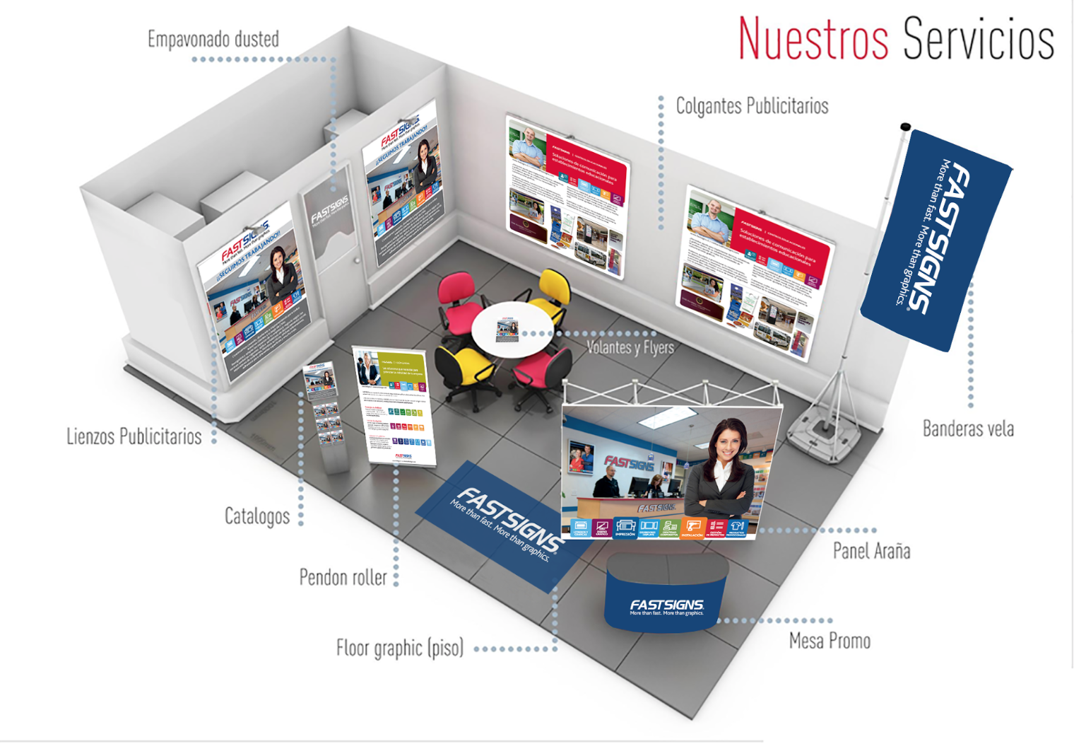 FASTSIGNS es una empresa dedicada al desarrollo y producción de soluciones gráficas integrales, contamos con asesores expertos en implementación, producción, impresión e instalación de gráficas. Nuestra filosofía está basada en solucionar los requerimientos gráficos de nuestros clientes, asesorándolos en todo momento y ayudándoles a visibilizar sus marcas y productos.